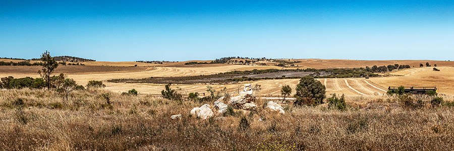 Vast cropping fields expand to the horizon on rolling hills near the Murray River in South Australia. Click here to see wall art available for this photo.