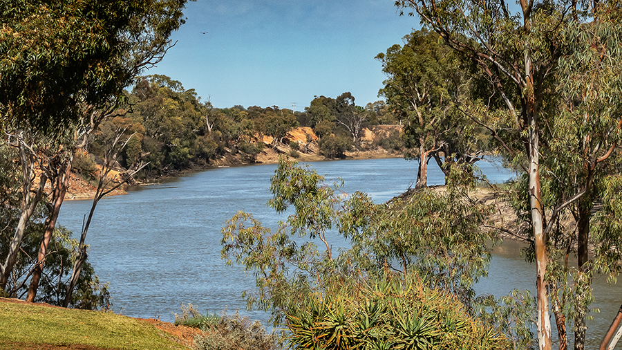 The Murray River near river towns of Euston (NSW) and Robinvale (Victoria) is showing signs of dying trees and scrub with red dirt banks. Click here to see wall art available for this photo.