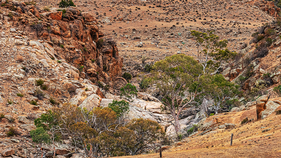 Mannum Falls are located in a rocky, barren, waterless area near Mannum in South Australia. Water only flows after heavy rains. Click here to see wall art available for this photo.